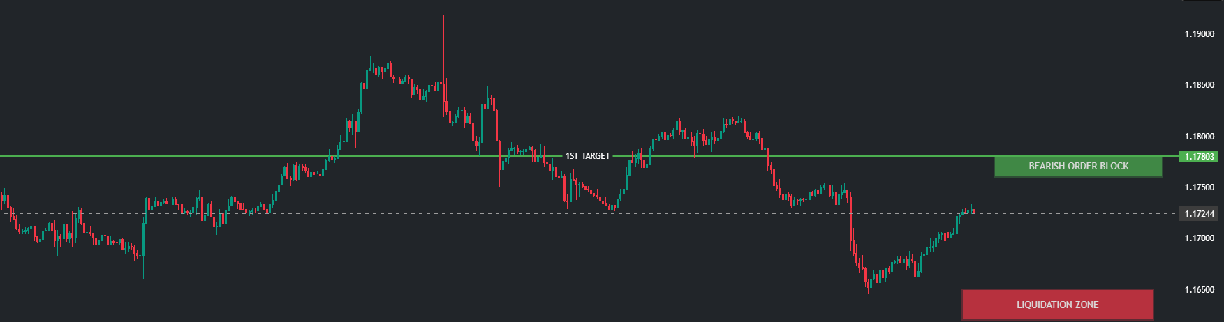 - Downside scenario: Rejection from OB may trigger a move back toward 1.1650.