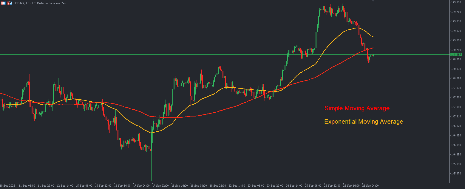 A moving average is a statistical calculation that shows the average value of a currency pair’s price over a specific period. Instead of reacting to short-term fluctuations, moving averages filter out market “noise” and provide a clearer picture of the overall price direction.
